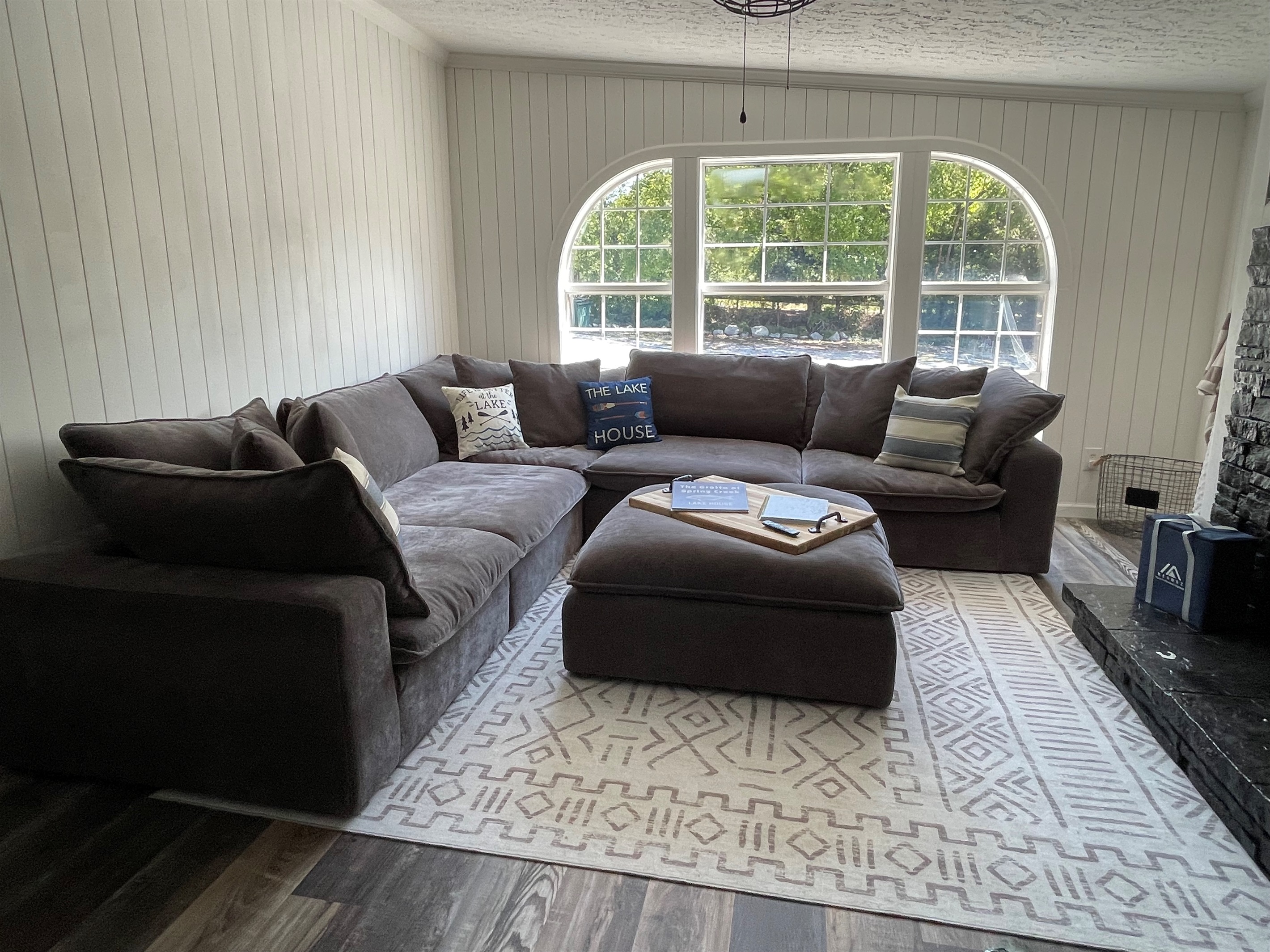 Livingroom: Large couch, coffee table